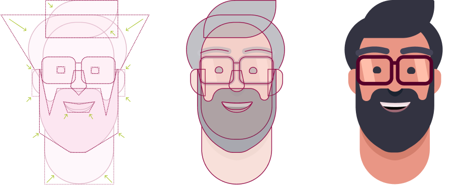 Everything in Accord can be broken down to basic shapes. Anchor points can be added/ modified/ as needed but are never left sharp.